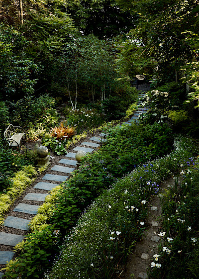 Photography of a three stories apartement in the heart of Paris 9th. Completely rebuilt and redecorated by Interior Architect Émilie Bonaventure and her team. Garden made by Gabriel Rochard, Atelier Gabriel.